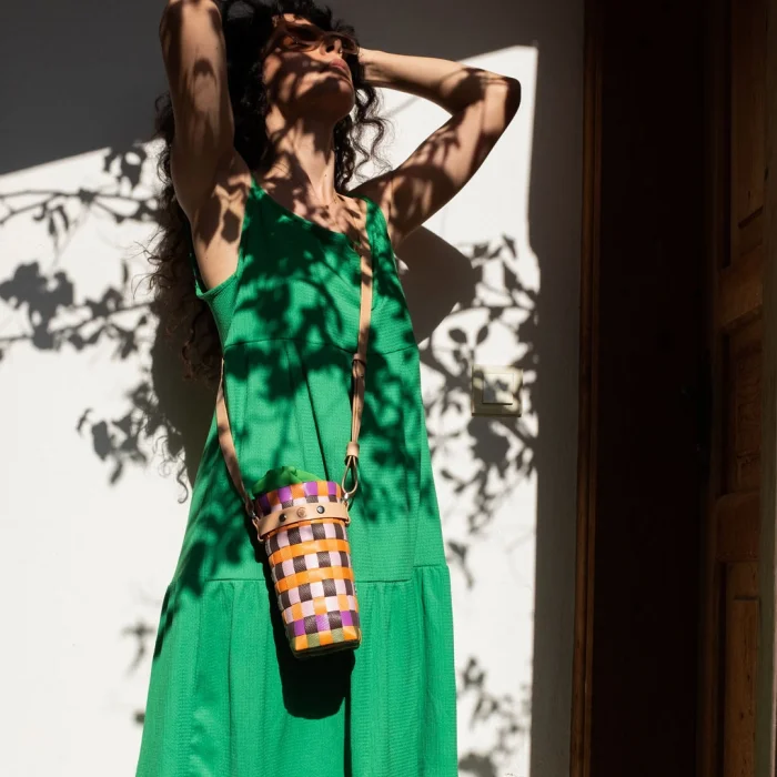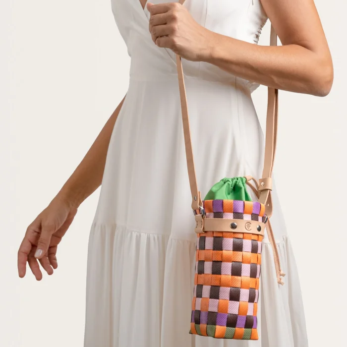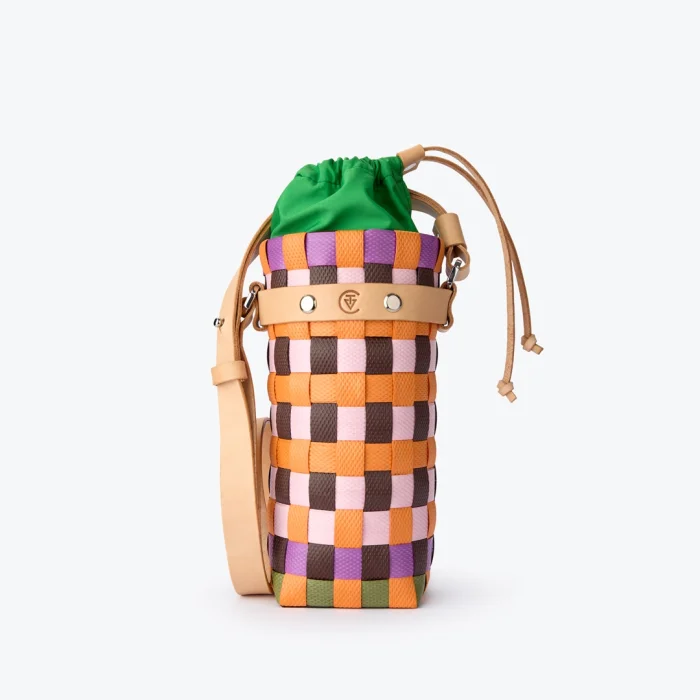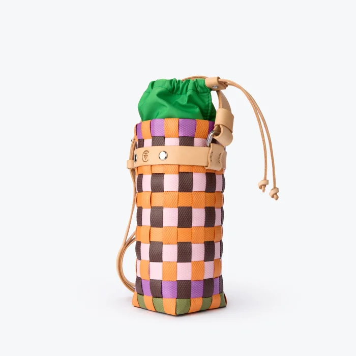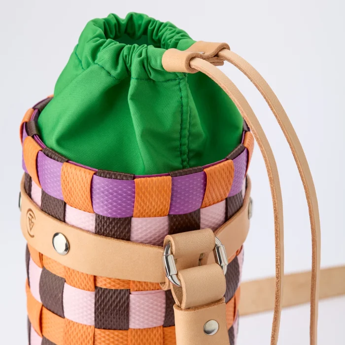 Water-repellent fabric, closure with leather strip, removable closure Size, 8cm x 20cm / Since the knitting of the baskets is produced by hand,