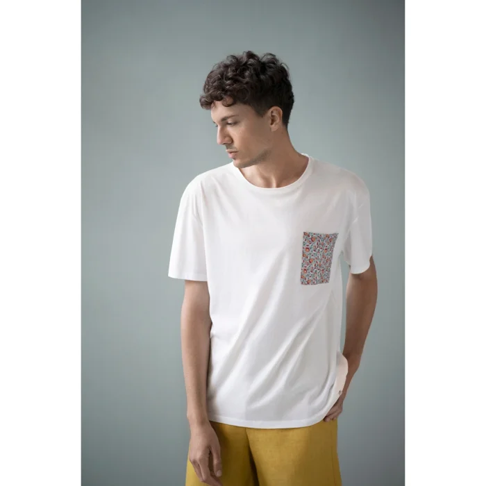 Material: 100% Cotton Maintenance: 30 degrees in the machine, steam iron, do not throw it to dry, hang it to dry. Model Dimensions: Height: 1.89cm / Bust: 95 cm / Waist: 75 cm / Hips: 96 cm / Neckline: 40 / Size L T-shirt with crispy floral print linen pockets. Oversize cut.