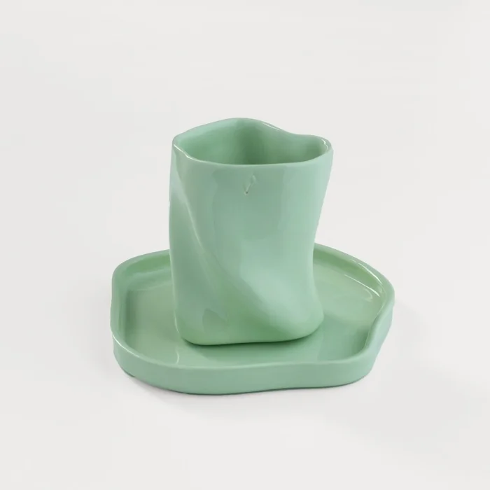 Inspired by nature, this handmade green ceramic set adds freshness to the space with its soothing tones. With its organic curves and simple design, it both makes your beverage presentations special and creates a decoratively stylish detail. A unique choice for those who love naturalness.