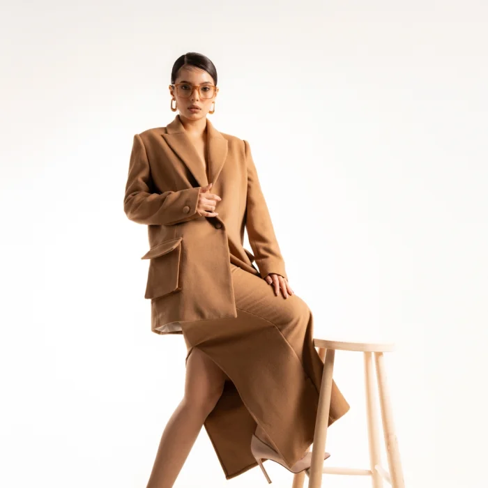 Our jacket, which is the key to a flawless look with its superior fabric quality and tailored fit, comes as a complete set with a special scarf made from the same fabric. It features a single front button and is lined with silk on the inside.