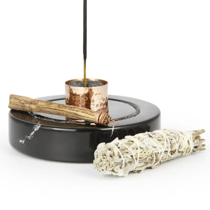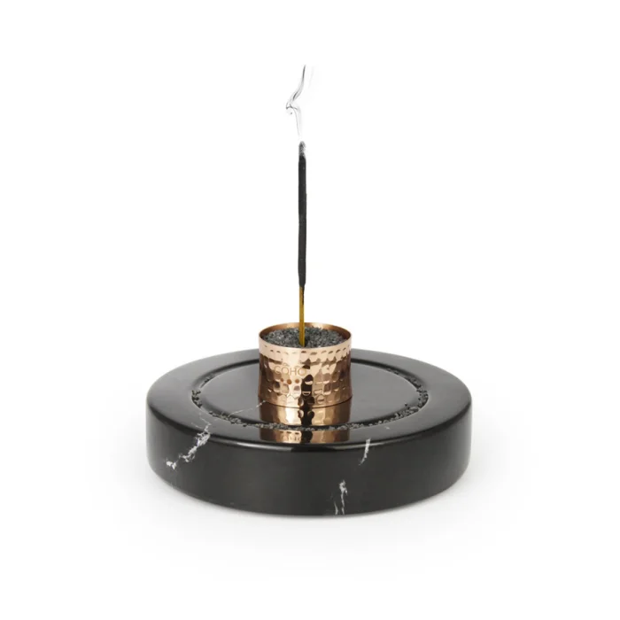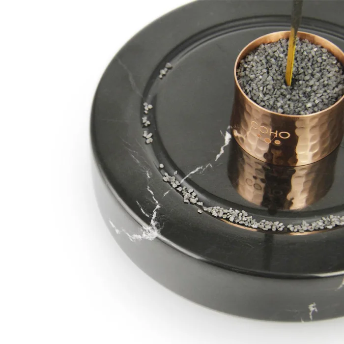 Black marble incense holder with handmade copper ring