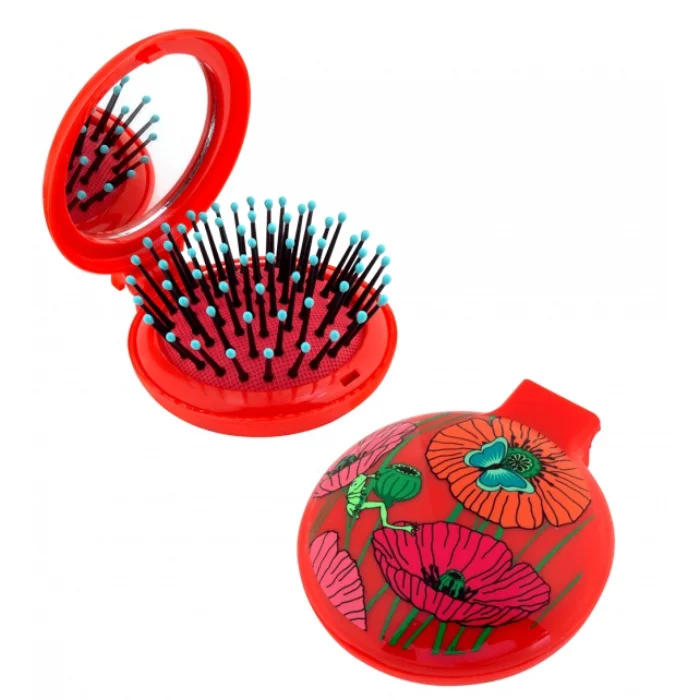 Product: Pylones Foldable Hairbrush With Mirror - Lady Retro (coquelicots)
