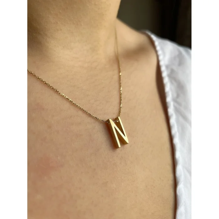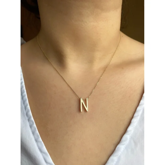 The necklace is made of 14K Yellow Gold. The length of the necklace is 40.5 cm, it has an extension of 5 cm. Any letter required can be supplied. It can be produced in 14K White Gold and Rose Gold on special order. You can contact us via e-mail for your letter requests and different color requests. Depending on the letter, the price will differ.