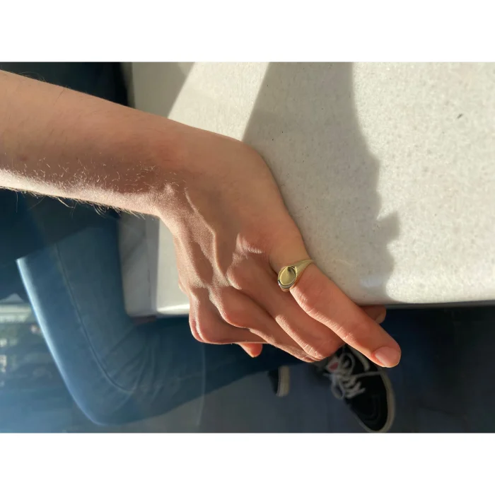 We can produce this 14k solid gold ring in White, Pink or Yellow Gold. This elliptical embroidered ring is a very cool personalized gold ring for men. It's the perfect lifetime gift for her!