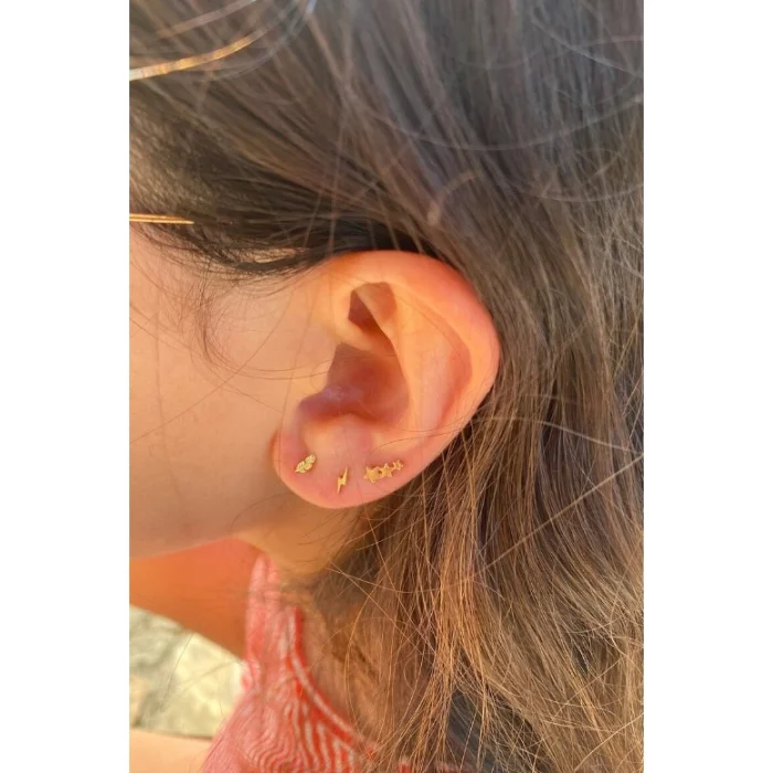 The height of the starred piercing in the front view is: 8 mm x 3 mm. It can be produced in 14K Rose Gold or White Gold on special order. Our prices are valid for one earring. It does not apply to the couple.
