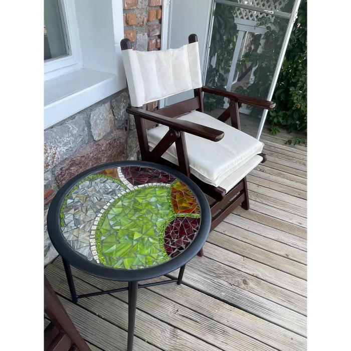 Mosaic coffee table with stained glass