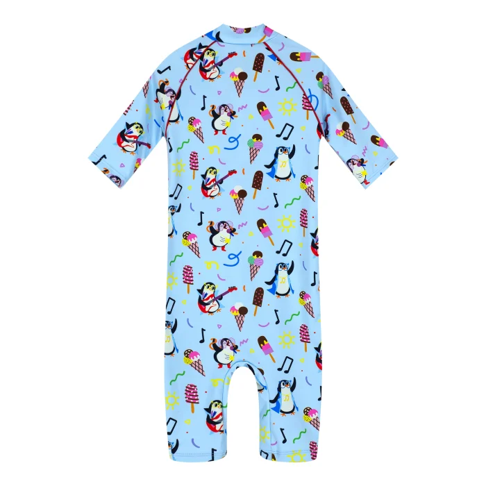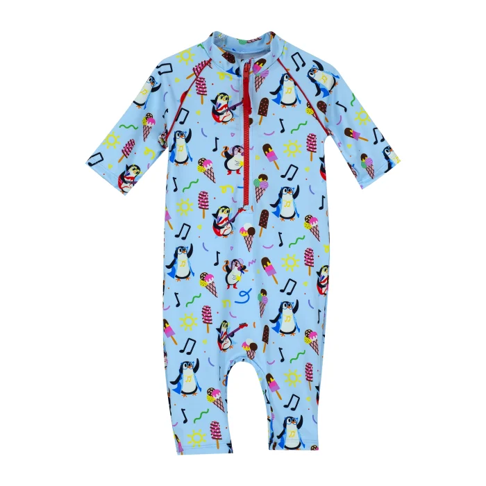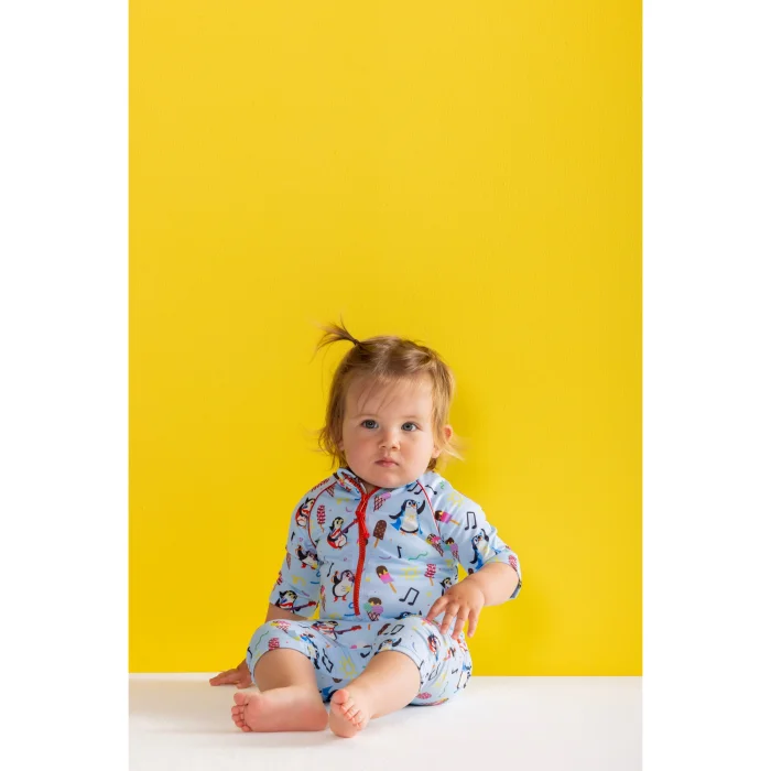 Designed for your little aquatic explorer, this baby romper combines both cute style and practical features. Inspired by our Tappy character, the playful print makes this jumpsuit special. Made from eco-friendly Repreve® fabric, it offers sustainability and comfort. With its high collar, long-sleeved design and UPF 50+ sun protection, it protects sensitive skin from harmful UV rays. The front zipper design allows for effortless dressing, while the stretchy and quick-drying fabric offers maximum comfort and freedom of movement. It's the perfect option to have fun on the beach, swim or enjoy the water!