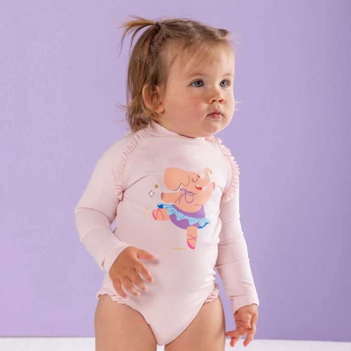 This long-sleeved swimsuit is designed for little ones who love elegance and movement. With elegant ruffle details on the shoulder and bottom, it perfectly combines style and functionality. Made from REPREVE fabric made from high-quality, eco-friendly recycled plastics, this swimsuit offers all-day comfort with its soft, stretchy, and quick-drying structure. Thanks to its long arms and integrated sun protection, it safely protects the little ones in outdoor activities. Whether it's at the beach or a pool party, this long-sleeved swimsuit is both fun and protective!