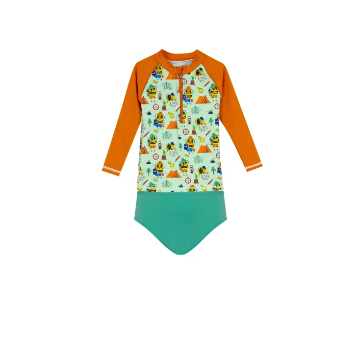 Combining style, functionality and practicality, this long-sleeved set is the perfect choice for your kids who love to explore. Offering a fun look with different color combinations, this set is made of eco-friendly Repreve® fabric. With its durability, flexibility and fast-drying comfort, it is ideal for unrestricted outdoor fun. Thanks to its front zipper, it can be easily put on and taken off, and offers adjustable ventilation. Thanks to its long-sleeved design and UPF 50+ sun protection, it protects your child safely in the sun.
