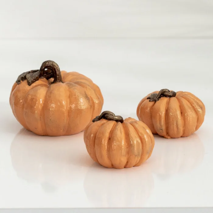 The 3-piece set consists of 1 medium-sized pumpkin, 2 mini-sized pumpkins.