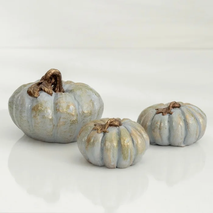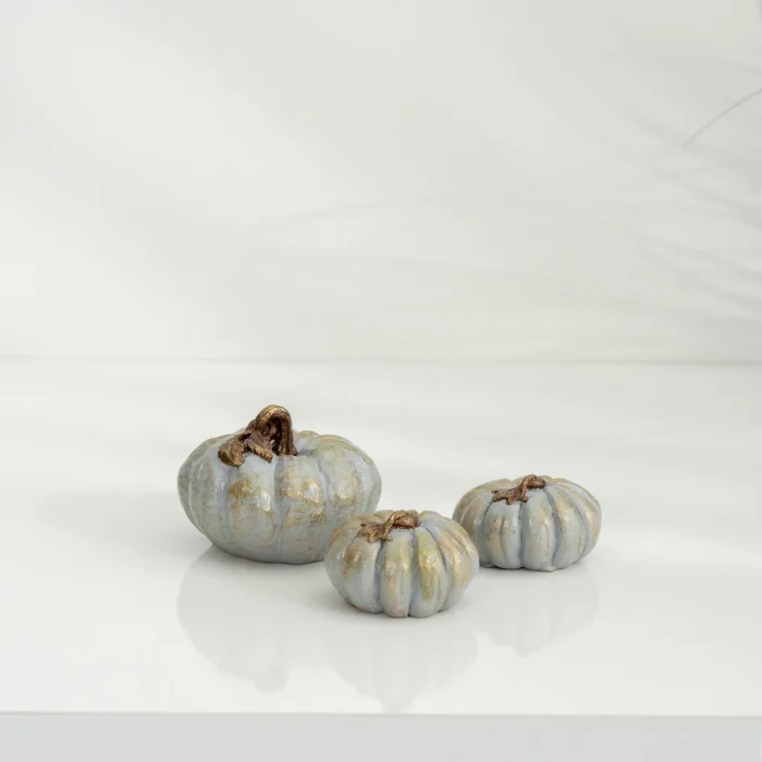 The 3-piece set consists of 1 medium-sized pumpkin, 2 mini-sized pumpkins.