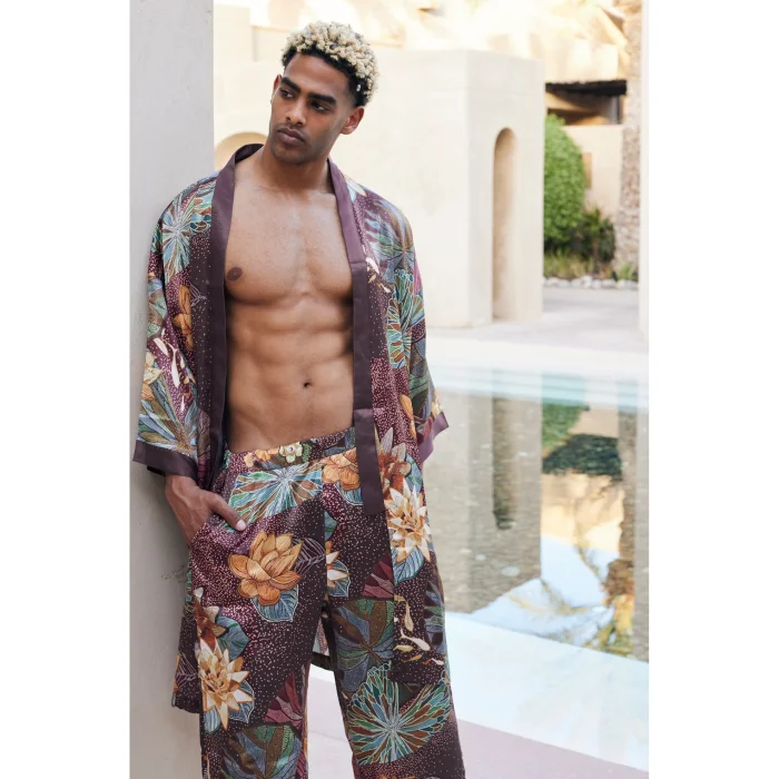 Product: Floral Chocolate Kimono & Pant Set