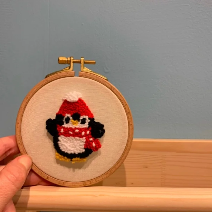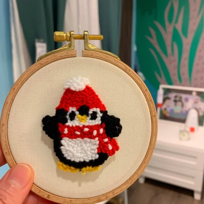 Product: Christmas Penguin Punch Embroidery Hoop Board Wall Decor