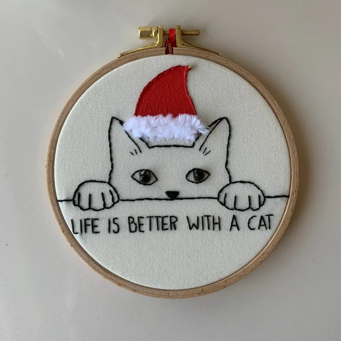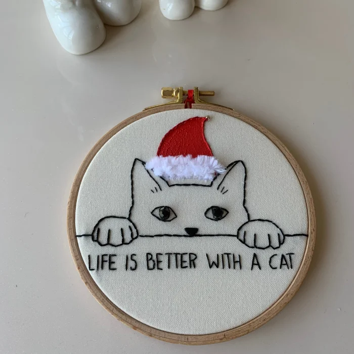 Life is better with cat hand embroidered embroidery hoop board