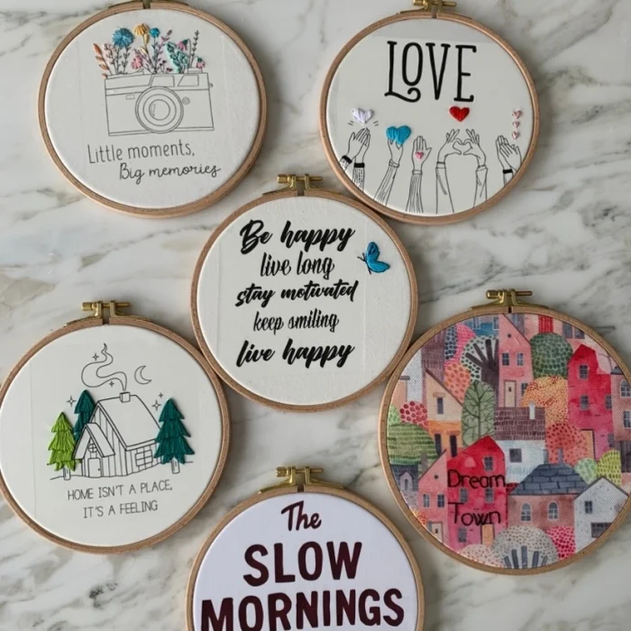 Wooden hoop board personalizes your spaces with a natural aesthetic understanding and original hoop embroidery models.