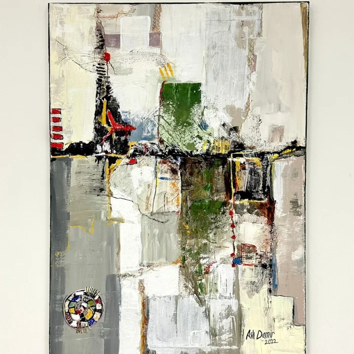 It is orderly, hard and controlled, like a city shaped by consciousness. The border passing through the middle makes the city skyline question the line between reality and reflection. Gray and white tones are the routine of life; The red and yellow accents that suddenly shine symbolize the striking moments in this routine. It is as if a memory suddenly comes to life: a voice, a smile, a disappearance...