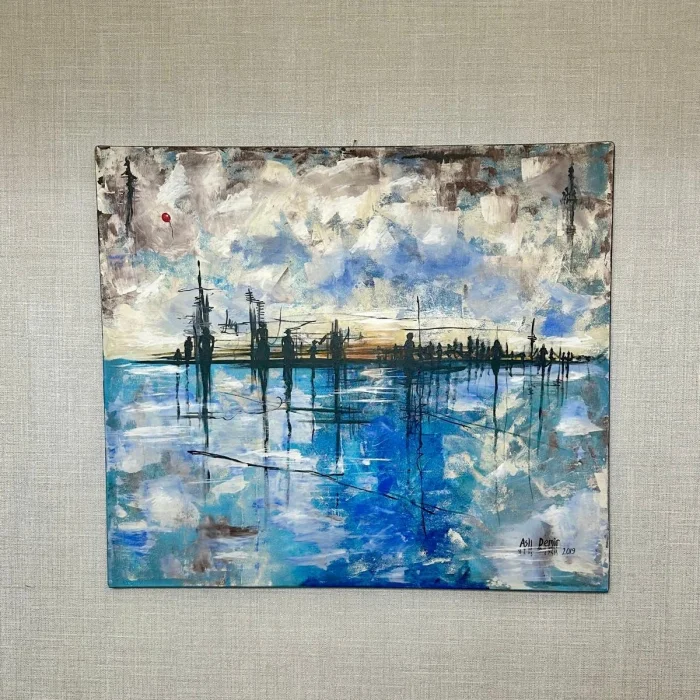 This piece is a painting of traces that accumulate layer upon layer and the silent balances that form over time. Hard lines and soft surfaces stand side by side; small red and blue highlights emerge like signs among the subdued colors. As you look at it, it looks like a map or an unfinished building; but its real narrative is that familiar tension between order and chaos. Offering a quiet, powerful and thought-provoking atmosphere, this work leaves space for the viewer to place their own story.