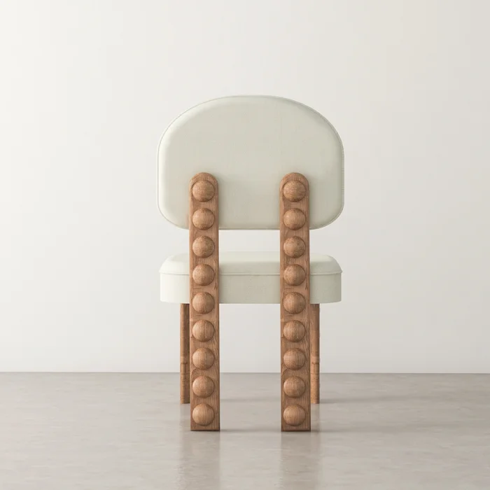 It is produced entirely by hand from chestnut wood. Wipeable linen fabric is used.