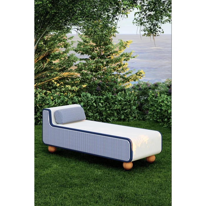 The daybed surface is coated with oven-baked paint suitable for outdoor use.