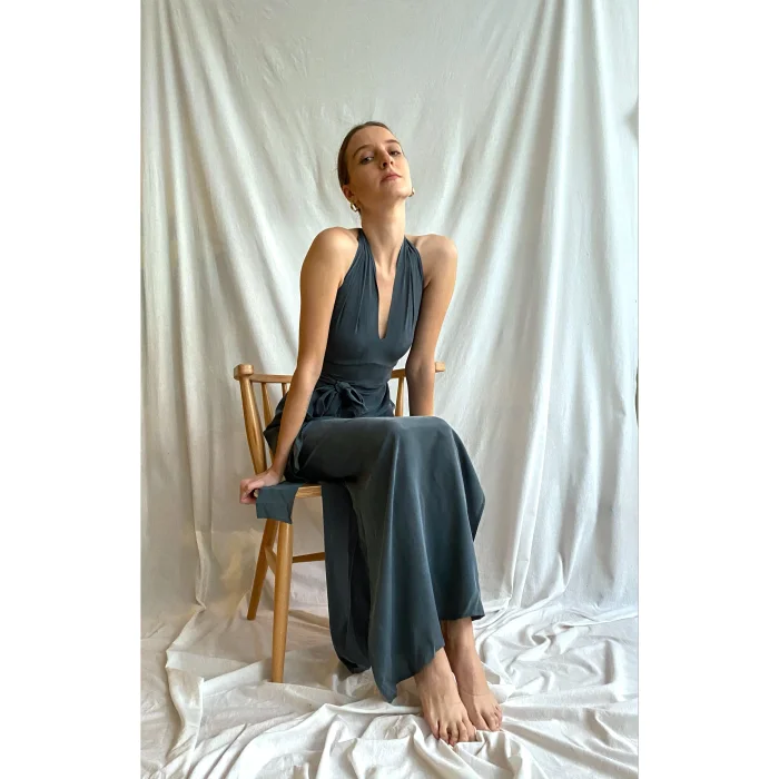 100% Ground Silk Fabric weight: 80 gr It has a hidden zipper on the side and ties it with a belt. The belt can be used on the front or back, and there are slits on both sides. The tread is rubberized. If the breast size is not too large, it is also suitable for medium size.