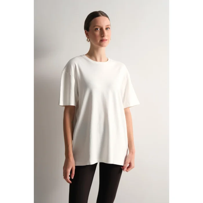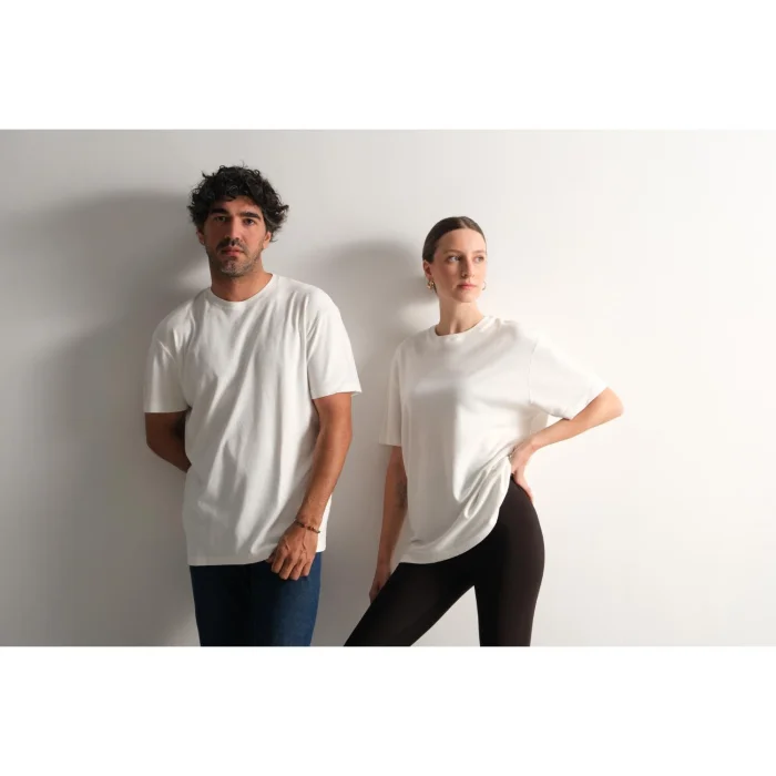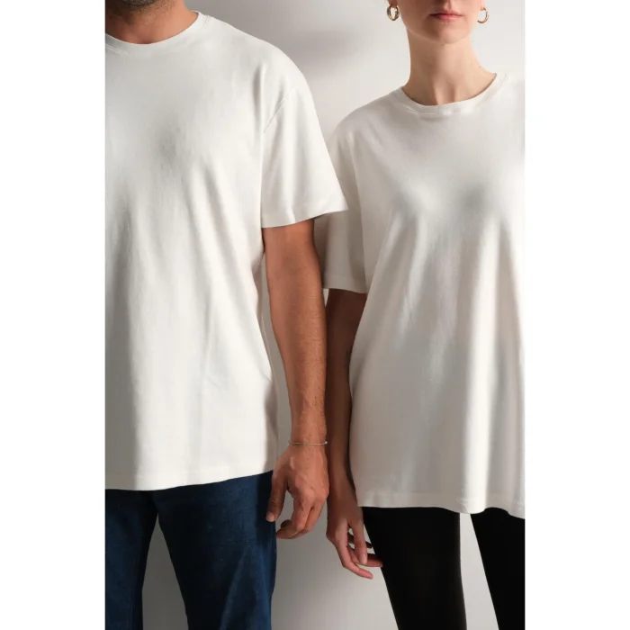 Female model: 177 cm / 54 kg — wearing size M.Product: Unisex Tee
