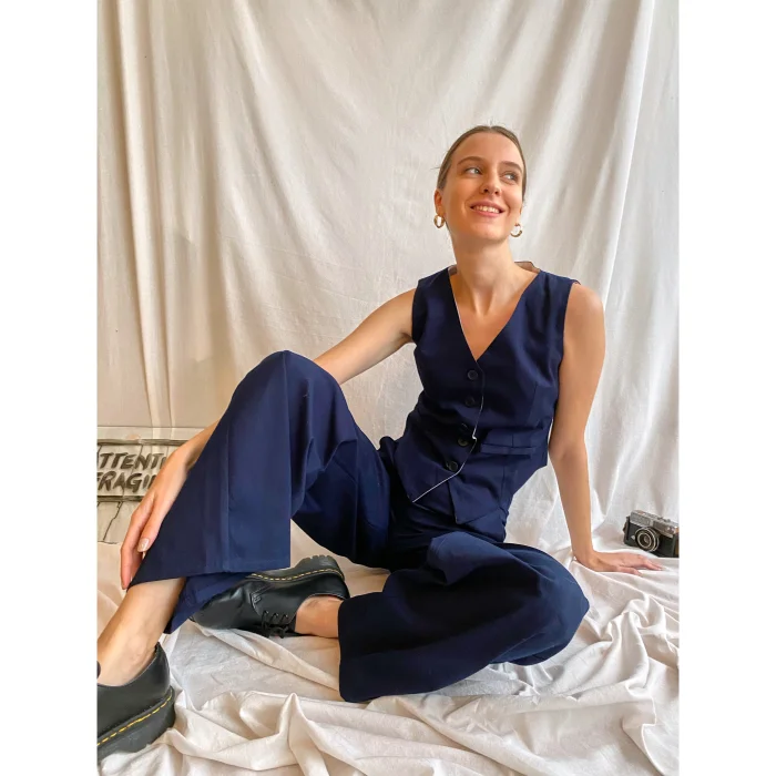 It is closed from the front with a zipper and button.Model size 1.75cm
