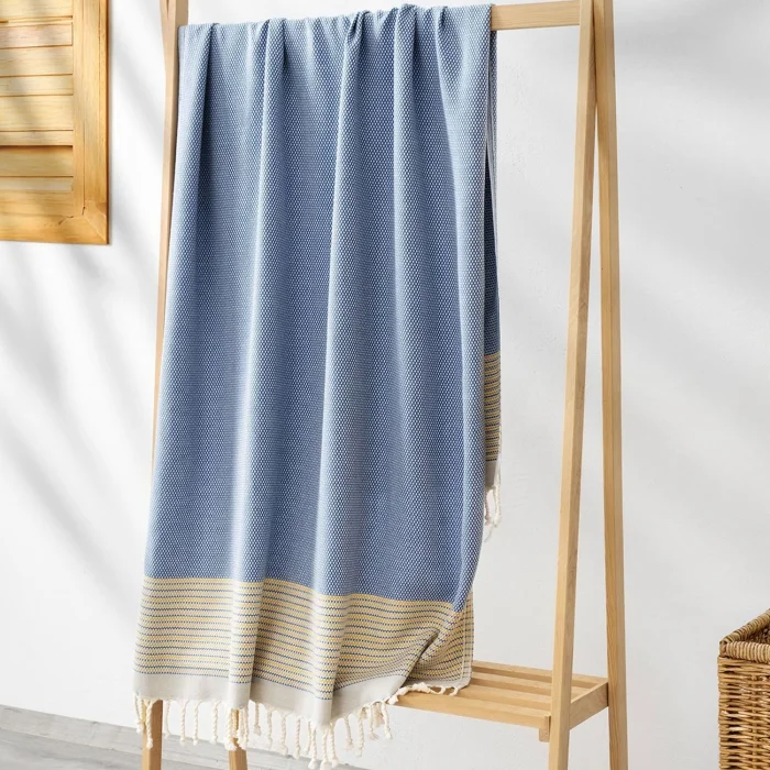Peshtemal, the original design of Denizli Concept, is a modern interpretation of the traditional Turkish loincloth. With its soft cotton texture and elegant tassels, it takes post-bath comfort to the next level. With its lightness, elegance and comfort, you will feel the quality in every detail.