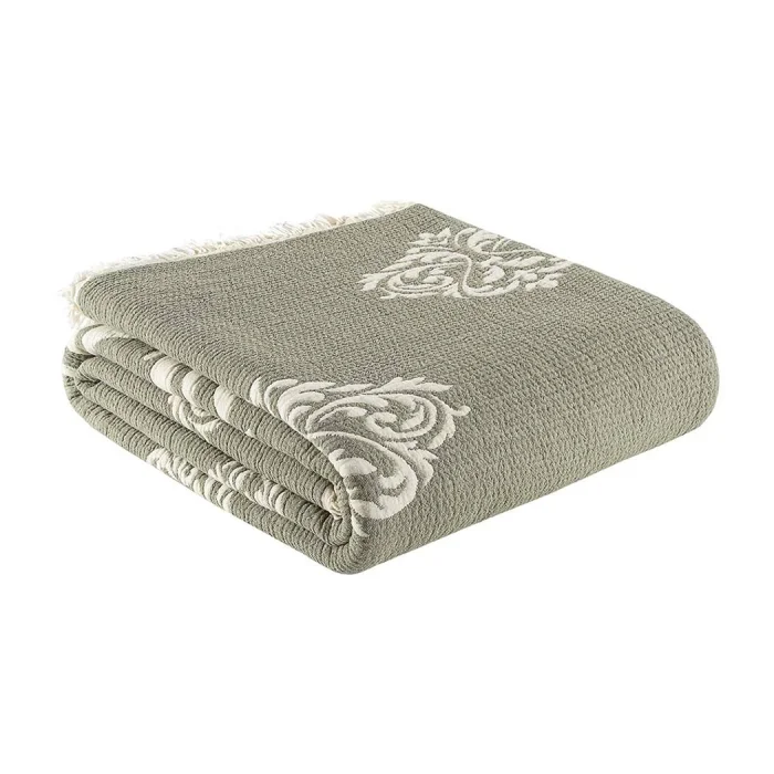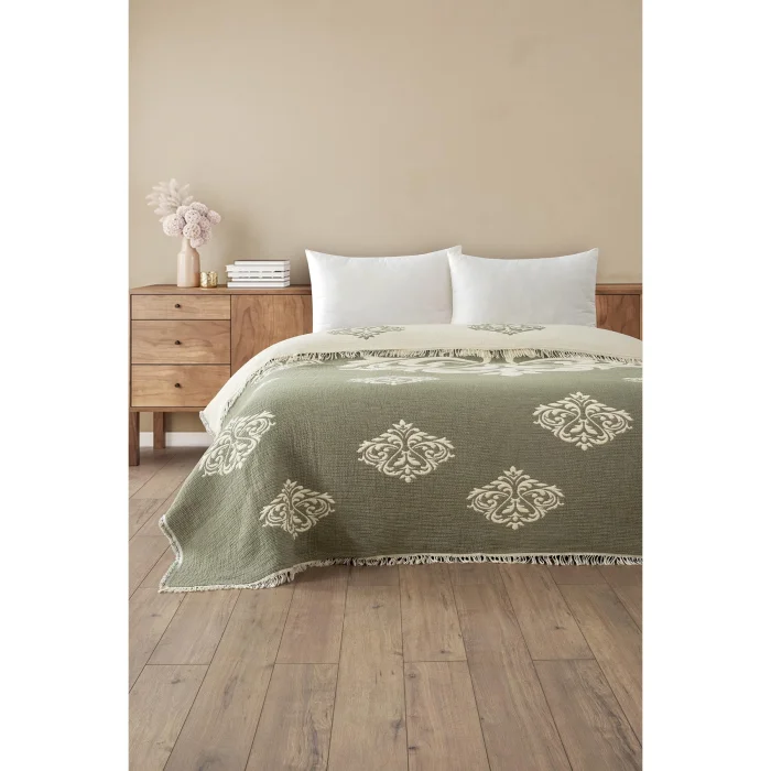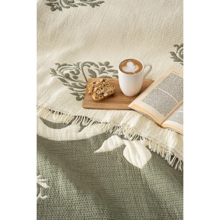 Carefully designed Baroque motifs offer elegance and comfort together. The upper and lower texture is two layers of 100% cotton muslin weaving. There is fiber (polyester) filling inside. Our product, which has a 5-layer weaving, offers a comfortable sleep with its fluffy filling. It prevents sweating with its breathable structure, It offers all-season use. You can use it as a bedspread, blanket and quilt. It provides a long-lasting use with its double-sided texture.