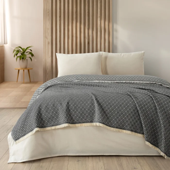 Denizli Concept's elegant and modern design approach to your bedrooms. The high-quality cotton texture not only offers you a visual elegance but also creates the perfect environment for a comfortable sleep. Geometric Diamonds patterned fabric adds a soft touch to your room with its 100% cotton texture and adapts to every decoration style. Bring both elegance and comfort to your bedroom with the Diamonds piqué set.