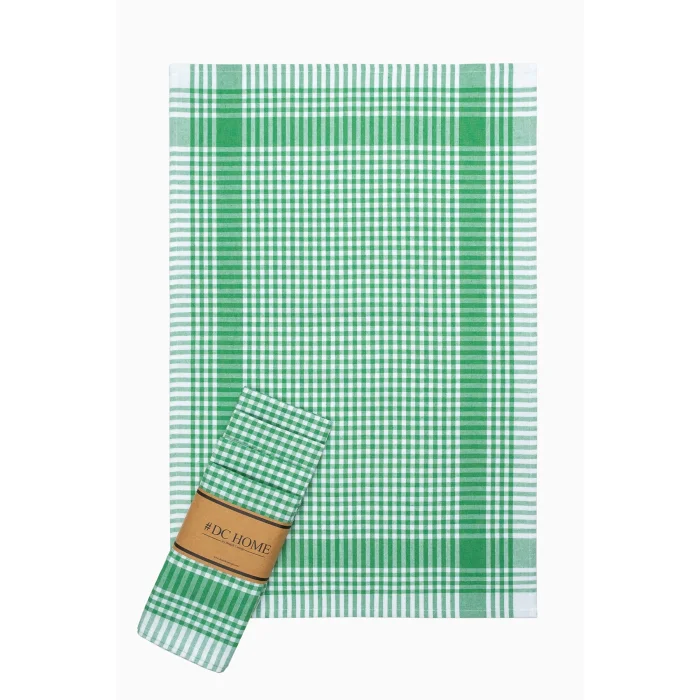 A green gingham tea towel that can be compatible with the colors of your home, suitable for decoration purposes. It can be used as a service napkin or tea towel. It is also a good tea towel. It is also suitable for use in the form of a feeding blanket at school. The yarn is dyed woven. Its edges are stitched and do not disassemble.