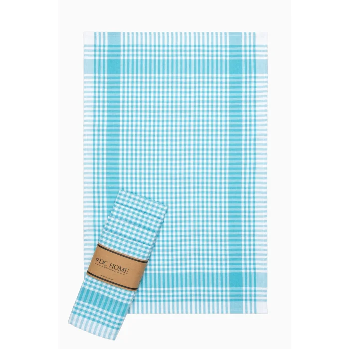 Package Contents; 5 Pieces Turquoise Gingham Checkered Tea Towel