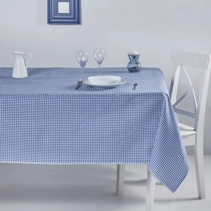 gingham blue tablecloth; Checkered patterns measure 0.5 x 0.5 cm. The blue tablecloth is suitable for daily use. It is an indispensable product for your breakfast tables, picnics and garden use. The yarn is dyed woven. With retro style patterns, you will make your tables look perfect; Size: 170x170 cm; Fabric: 100% Cotton; Package Includes: 1 Piece Blue tablecloth Our product is OEKO-TEX certified. ; Why Should I Buy Oeko-Tex Certified Products? - Oeko-Tex certified products are products that have successfully passed all tests and approved according to international standards. - It does not contain carcinogenic and allergenic materials. It does not irritate the skin and does not harm human health.