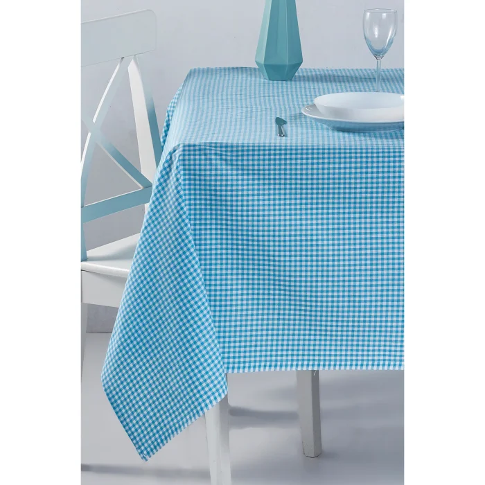 gingham turquoise tablecloth; The Checkered Pattern measures 0.5 x 0.5 cm. The turquoise tablecloth is suitable for daily use. It is an indispensable product for your breakfast tables, picnics and garden use. Its yarn is dyed, woven, and the edges are stitched; Size: 170x170 cm; Fabric: 100% Cotton; Package Includes: 1 Piece Turquoise tablecloth Our product is OEKO-TEX certified. ; Why Should I Buy Oeko-Tex Certified Products? - Oeko-Tex certified products are products that have successfully passed all tests and approved according to international standards. - It does not contain carcinogenic and allergenic materials. It does not irritate the skin and does not harm human health.