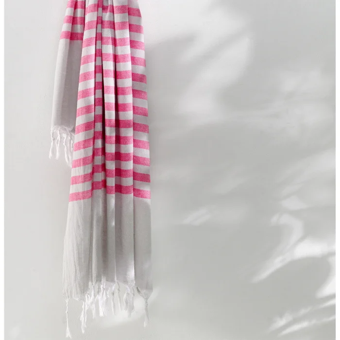 You will feel different with a gray fuchsia loincloth woven with premium 100% carded cotton yarn. It is pre-washed, there is no shrinkage and fading. With its pastel colors and simple design, you can use it with pleasure on the beach and in the pool.