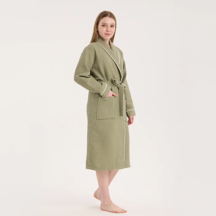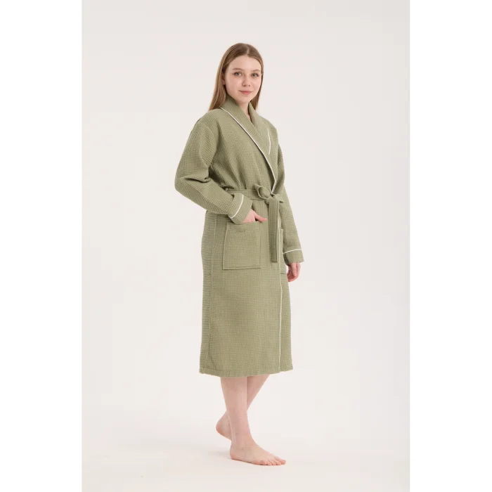 Piqué Gray Bathrobe Gray bathrobe, which is one of the most preferred colors, is specially designed. Made with premium cotton yarn The texture is soft and does not irritate your skin. It has a high moisture absorbency rate and dries quickly. Piqué gray bathrobe is a UNISEX modelSuitable for use as both women's bathrobe and men's bathrobe Package Contents 1 Piece Gray Bathrobe Bathrobe Fabric Content: 65% Cotton, 35% Polyester Our product is OEKO-TEX certified. Why Should I Buy Oeko-Tex Certified Products? - Oeko-Tex certified products are products that have successfully passed all tests and approved according to international standards. - It does not contain carcinogenic and allergenic materials. It does not irritate the skin and does not harm human health.