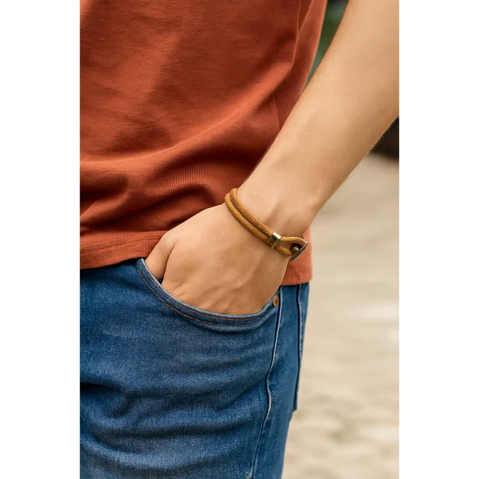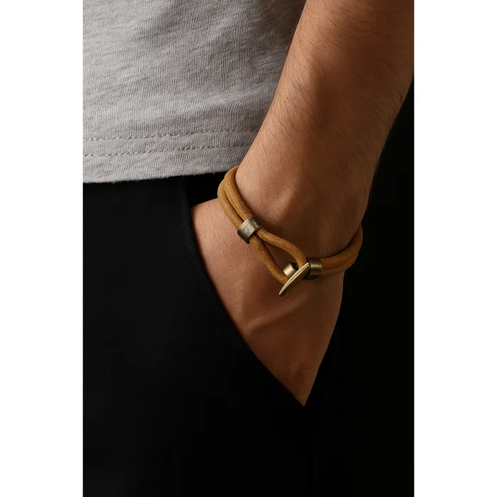 Men's Leather Bracelet with Antique Brass Closure – Natural and Brown Color Options This antique brass closure men's leather bracelet offers an eye-catching look with its stylish and noble design. Natural and brown leather options add natural elegance and depth to the bracelet, while the antique brass closure detail adds a vintage flair and a touch of sophistication. Every detail gives the bracelet both a timeless elegance and a modern aesthetic . The high-quality leather material ensures the durability of the bracelet, while the antique brass closure elegantly complements your bracelet. With its noble and stylish stance, it is an accessory that can be easily preferred both in daily use and on special occasions. Features: A natural elegance with natural and brown leather options. The antique brass closure detail adds a sophisticated look. High-quality leather ensures long-term use. Noble and stylish design, matching any style. A great option for both everyday use and special occasions . This men's leather bracelet with antique brass closure perfectly complements your style with its elegant and original design.