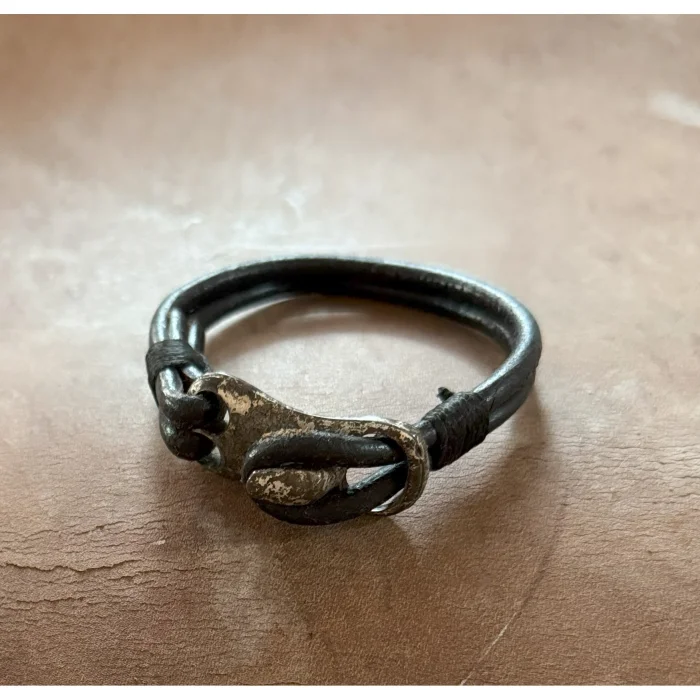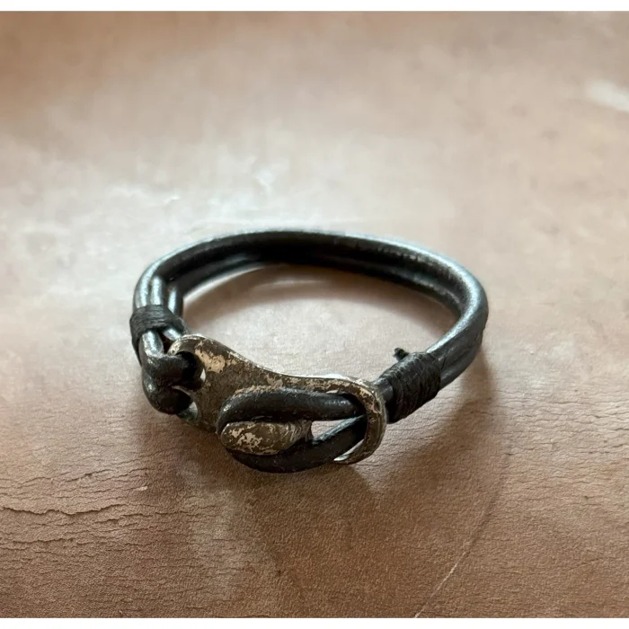 Designed for men looking for elegant style and strong character, this black leather bracelet combines elegance and durability. The natural texture of black leather and antique tumbled metal details add a timeless flair to the bracelet. The tumbled metal gives the bracelet a rustic look, while blending perfectly with the elegance and durability of the leather. This bracelet stands out as an accessory that will complement your style in special moments as well as in daily use.