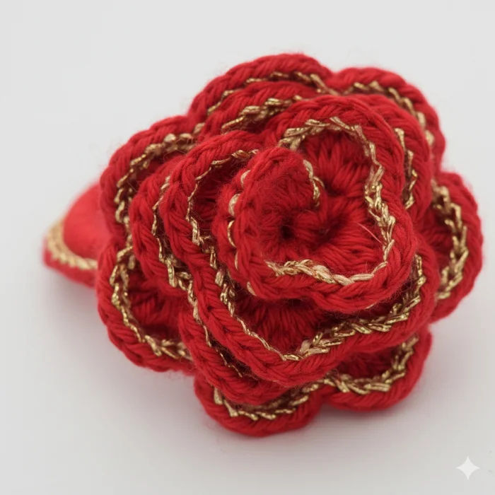 Hand-knitted napkin ring, red gold napkin ring, handmade tableware accessory, rose-shaped napkin ring, stylish table centerpiece, decorative napkin ring, gift ideas