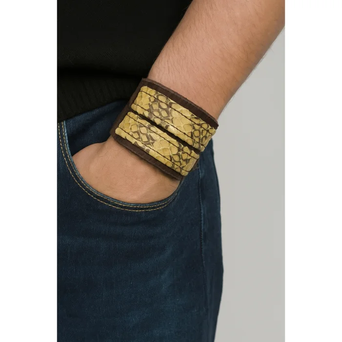 Product: Genuine Python Leather Detailed Men's Cuff Bracelet - Designer Bracelet