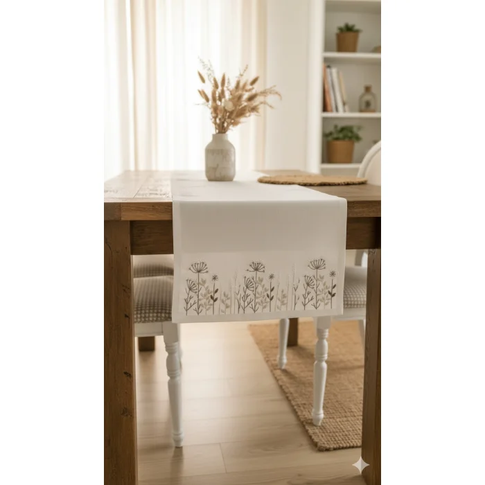 Bring the peaceful beauty of a blooming country garden to your tables. Made from premium stonewashed raw linen, this hand-embroidered botanical runner; It is a perfect combination of rustic farmhouse warmth and exquisite artisan craftsmanship.