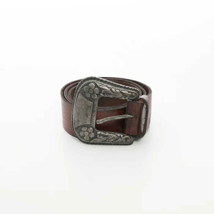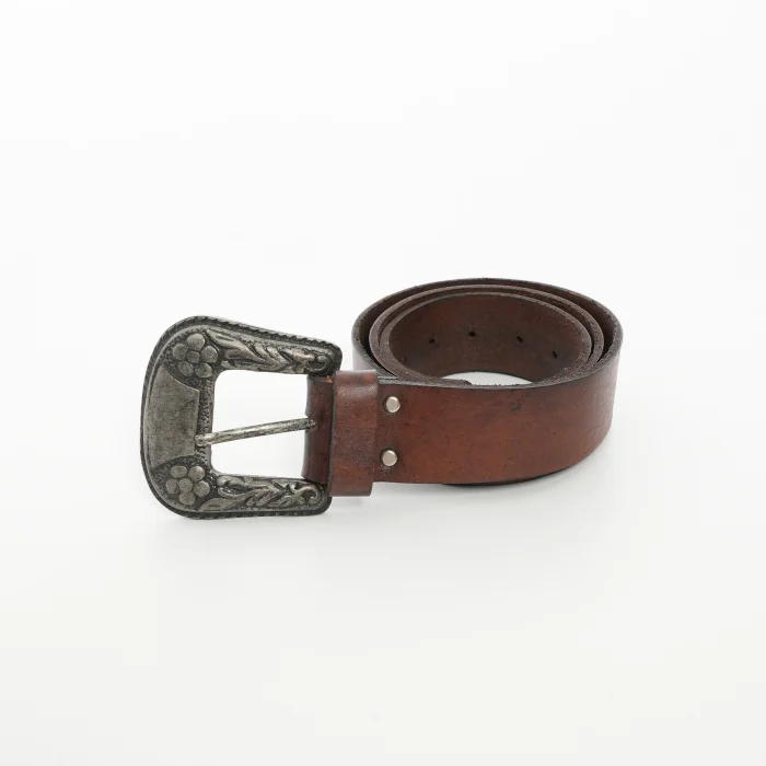 Buckle: Embossed vintage metal buckle with floral pattern
