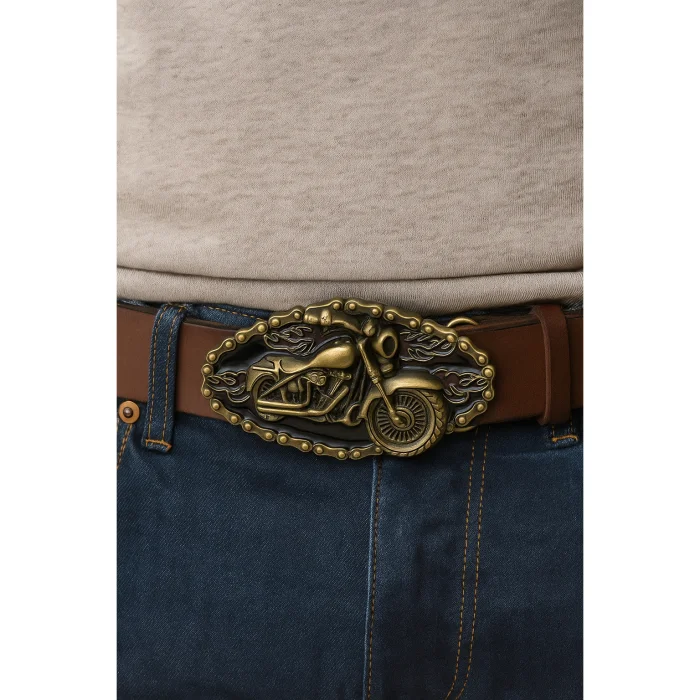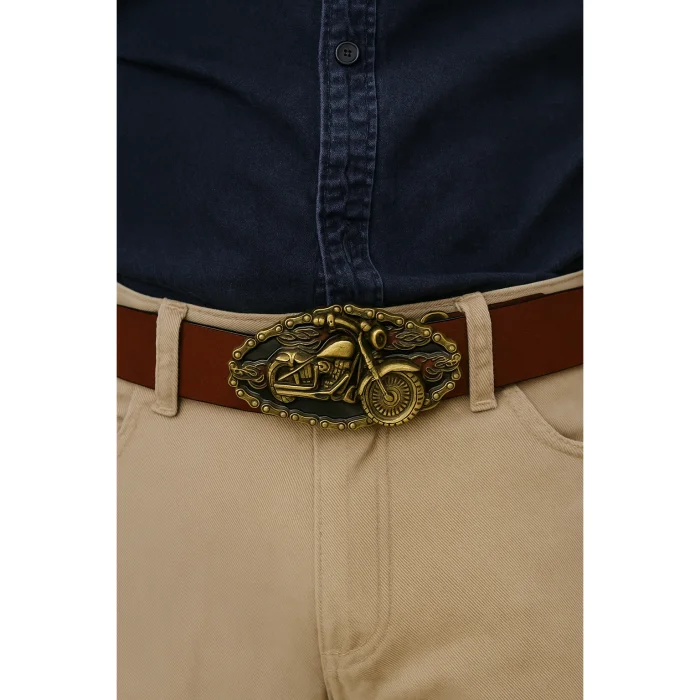 This stylish and durable men's belt is carefully handmade. Made of genuine leather, this belt is a great option for those who embrace the biker style. Thanks to its durable structure and quality leather, it offers long-term use. It provides a comfortable and sturdy wearing experience, suitable for biker style. Its modern design and stylish metal buckle detail can be easily combined with any type of outfit. Ideal for both everyday use and special moments, this belt is an essential accessory for motor enthusiasts.