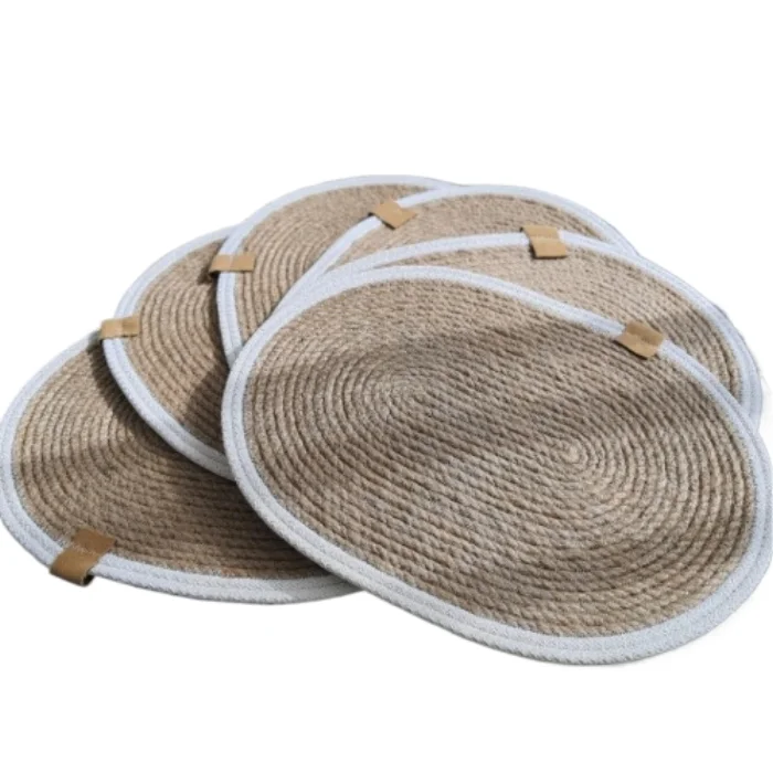 Handmade Oval Jute Supla - 4 Pieces Supla Set - Bohemian Natural Food Presentation Accessory (40x30 cm)