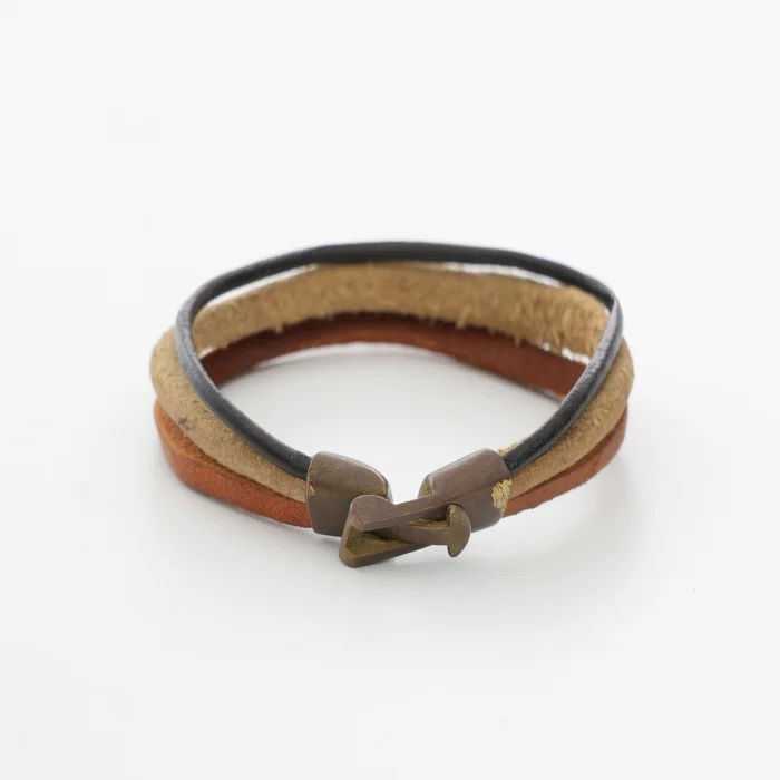 This layered men's leather bracelet is inspired by the warm tones of cold winter days. Its design with different layers makes each bracelet unique. Designed with rich and deep color tones in winter, the bracelet shows its elegance and elegance in every detail. The brass closure adds both solidity and a touch of sophistication to the bracelet; The non-tarnishing brass has acquired a natural patina over the years, adding a special character to your bracelet.