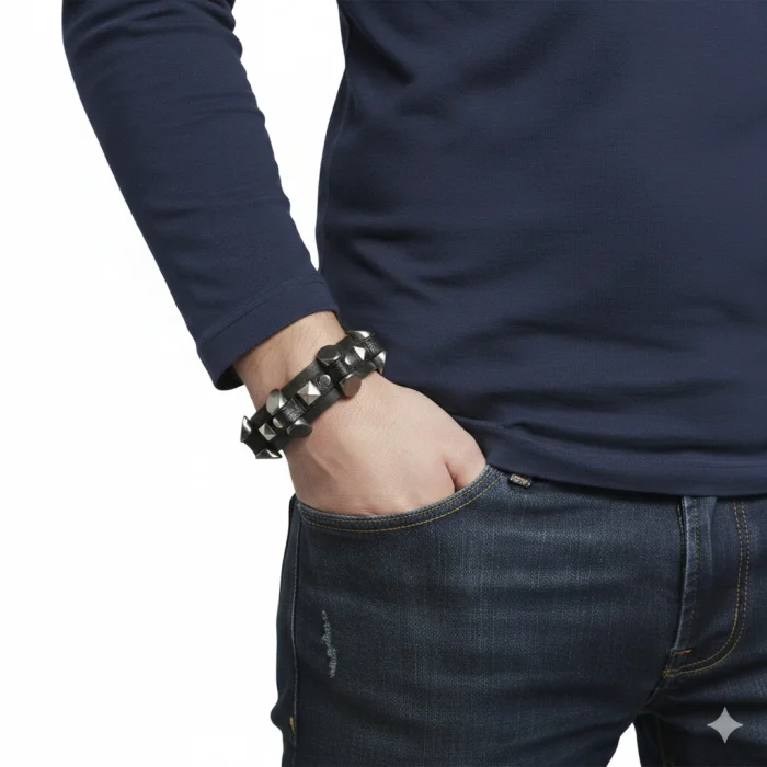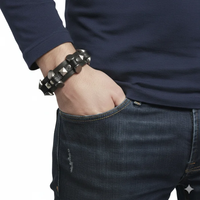 Men's Leather Bracelet - Gothic Design Bracelet This men's leather bracelet , which is the symbol of a stylish and powerful style, draws attention with its gothic design . Made of high-quality leather material, the bracelet fits comfortably on wrists between 18 and 20 cm . Thanks to its arched adjustable feature, it easily adapts to the size you want and always offers a comfortable use. With its stylish details and durable structure, the bracelet is an ideal choice for both daily use and adding elegance to special moments. Combined with gothic design elements with a modern touch, this bracelet will add strength to your style. Specifications: High quality leather material. Gothic design is striking with its details. Compatible with wrists from 18 to 20 cm . Adjustable arch system , easy to customize. Stylish and durable structure, long-lasting use. This bracelet will be the perfect accessory to reflect your strong and original style.