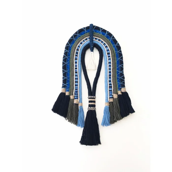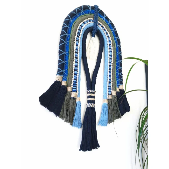 Modern Macramé Wall Ornament - Blue Wall Decor with Boho Tassels (62x32 cm)