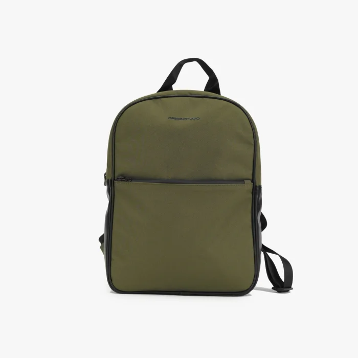 Water-repellent polyester fabric, water-repellent zippered front pocket, zippered pocket on the inside, extra tablet & laptop compartment on the inside, shoulder strap adjustable according to body size, padding to make the back feel comfortable