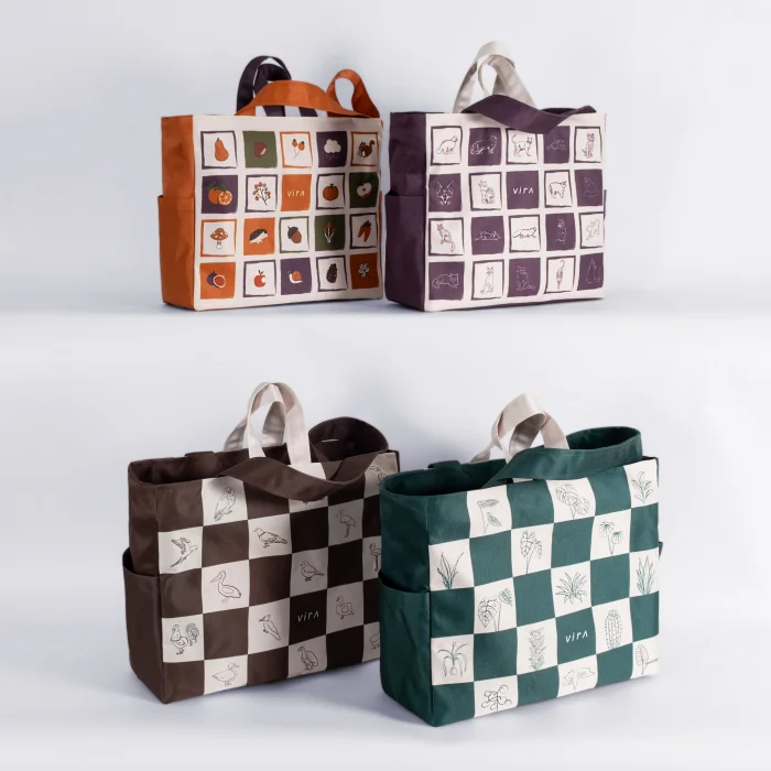 Material: Made from a high-weight, waterproof, recycled, and vegan special fabric using a digital printing technique.