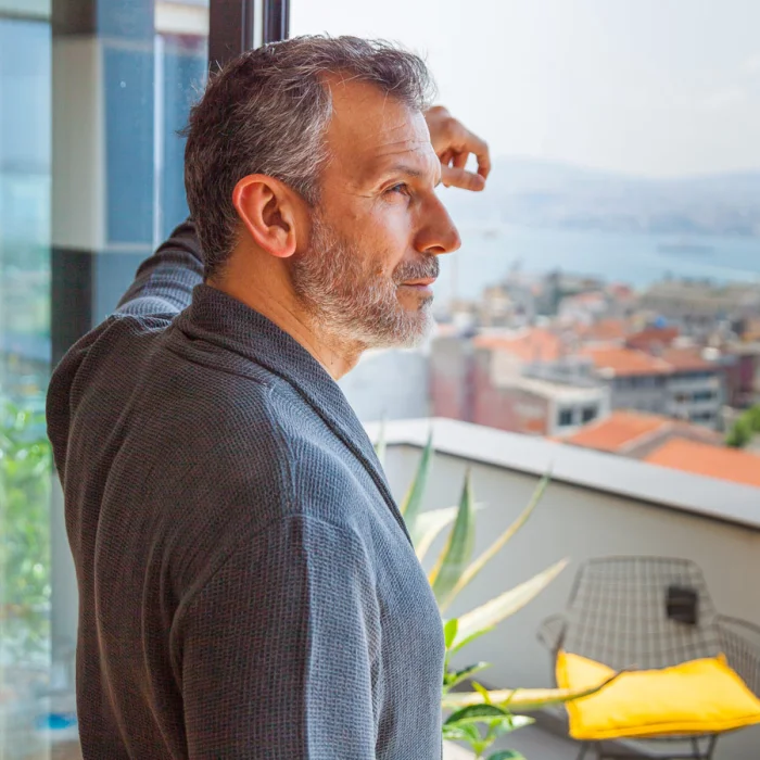 Long bathrobe ,waffle-knit cotton bathrobe with shawl collar, belt and front pockets.Comfortable fit.