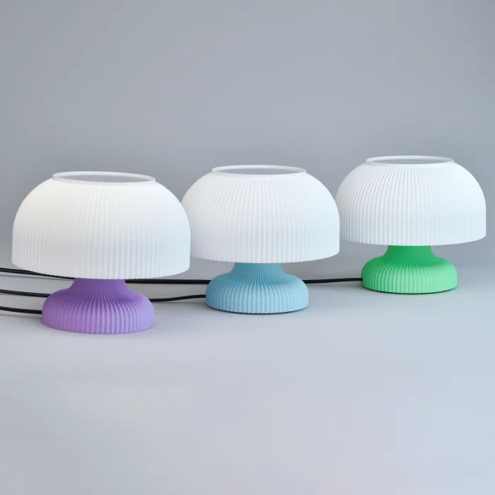 The Mushroom Lamp is a 3D printed product that has a very small and sweet look to it! It would be best used in a kitchen or as bedside table lamps to add nuance to a space. The Mushroom Lamp emits a warm, diffused glow, combining timeless design with contemporary durability to create a serene and inviting ambiance.